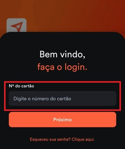 Realizar o login com o número do cartão e a senha.